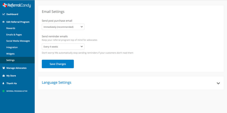 When looking at referral program options, ReferralCandy jumped out as 1 easy to set up, 2 an inexpensive option for a startup. Many referral programs are expensive, I'm not saying their not worth it, but if you have a small customer base and want to start testing referrals, Referral Candy can get you up and going for just $25 a month.