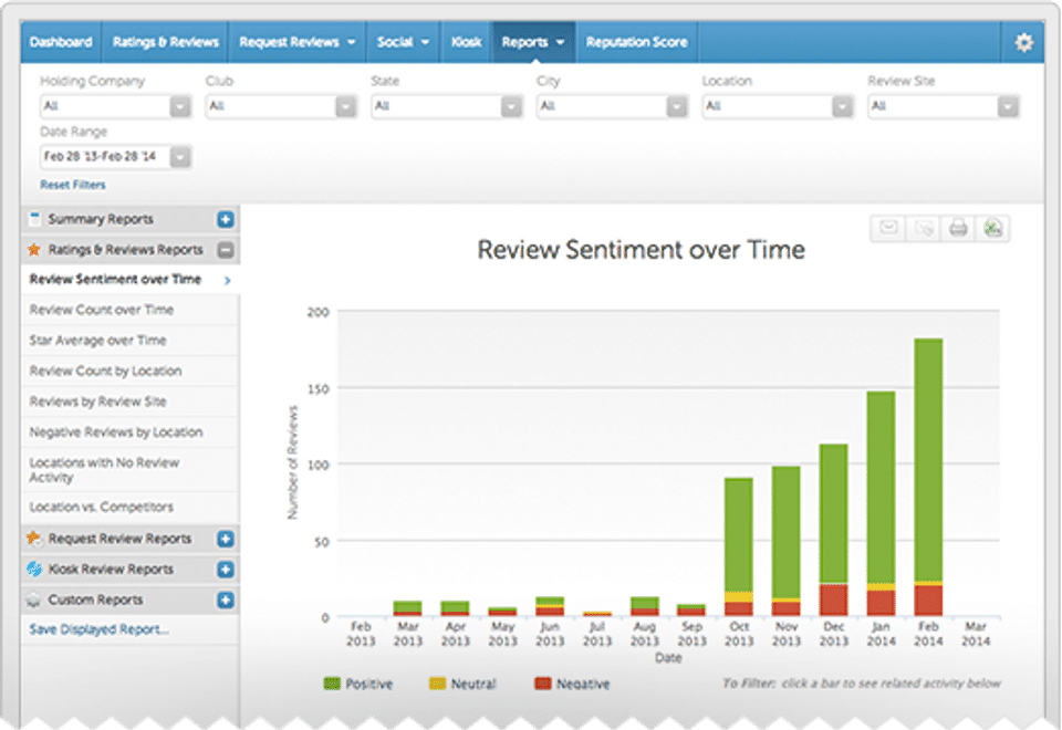 Reputation.com is the Reputation Management Software used for the below functionalities.