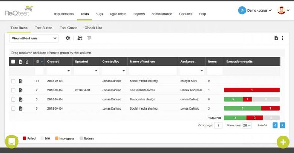 ReQTest has given us a simple to utilize Testing Platform which subtleties all prerequisites, experiments, and test plans. Bugs from testing are effectively recorded and with the utilization of connections, we have full detectability. Right now ReQTest has just be utilized by the executive and we realize we will truly observe the genuine potential when we have different clients finishing the trials doled out to them.