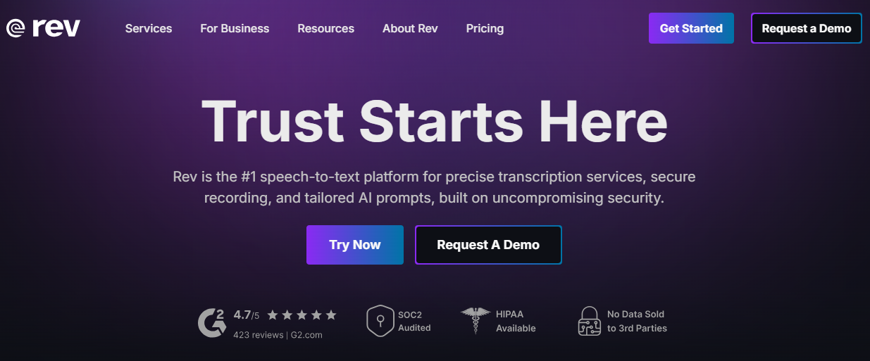 Rev is a versatile speech-to-text platform that supports both quick AI-based transcription and premium human-quality transcription services. It addresses the needs of diverse users—from solo professionals and small teams to enterprises requiring high accuracy, security, and compliance.