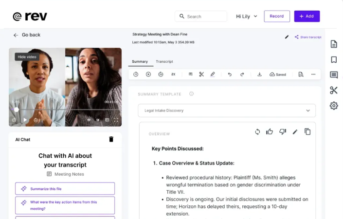 Overall, Rev is ideal for anyone needing fast, accurate, and scalable transcription or captioning. It’s especially well-suited to legal, enterprise, media, and academic environments. Users appreciate its ease of use, flexible plans, and feature-rich platform. If you're managing sensitive content or legal proceedings, Rev offers certified transcript options and robust compliance support.