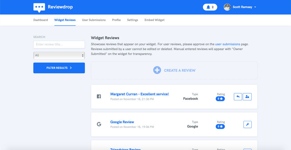 Reviewdrop is the Reputation Management Software used for the below functionalities.