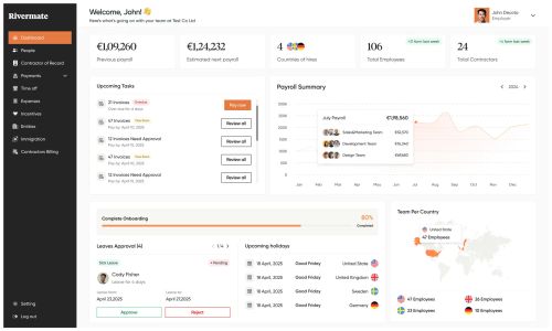 - Onboarding: Rivermate manages contracts, compliance, and documentation