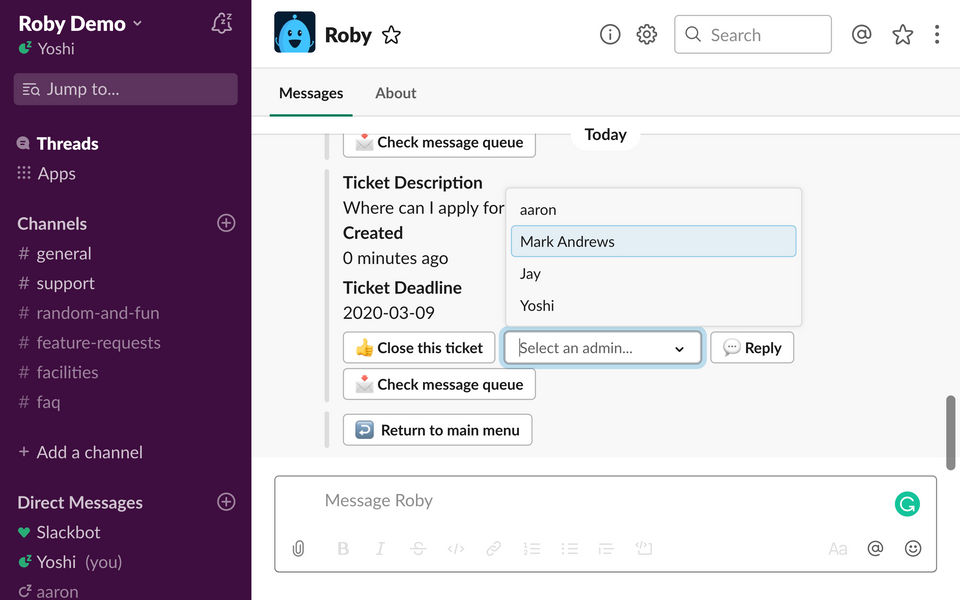 Roby provides Online (Ticket) support.