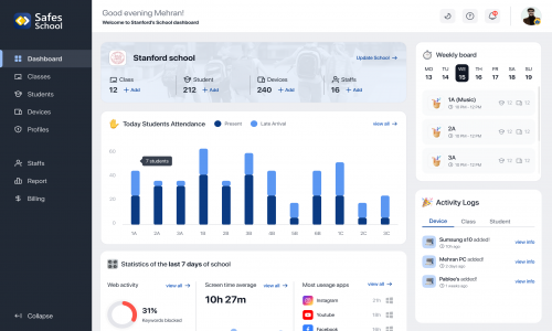 Safes School is a digital safety app designed to help schools protect their students from online dangers. This app provides a safe and secure online environment for schools, where students can access digital content and engage in online activities without compromising their safety and privacy. With Safes School, schools can easily manage and monitor their online activities, including internet browsing, social media usage, and email communications. The app uses advanced technology to filter out harmful and inappropriate content, such as cyberbullying, pornography, and violence. The app's user-friendly interface makes it easy for schools to customize their safety settings and monitor online activities, and its real-time reporting and analytics features help them track and analyze online behaviors and trends.
