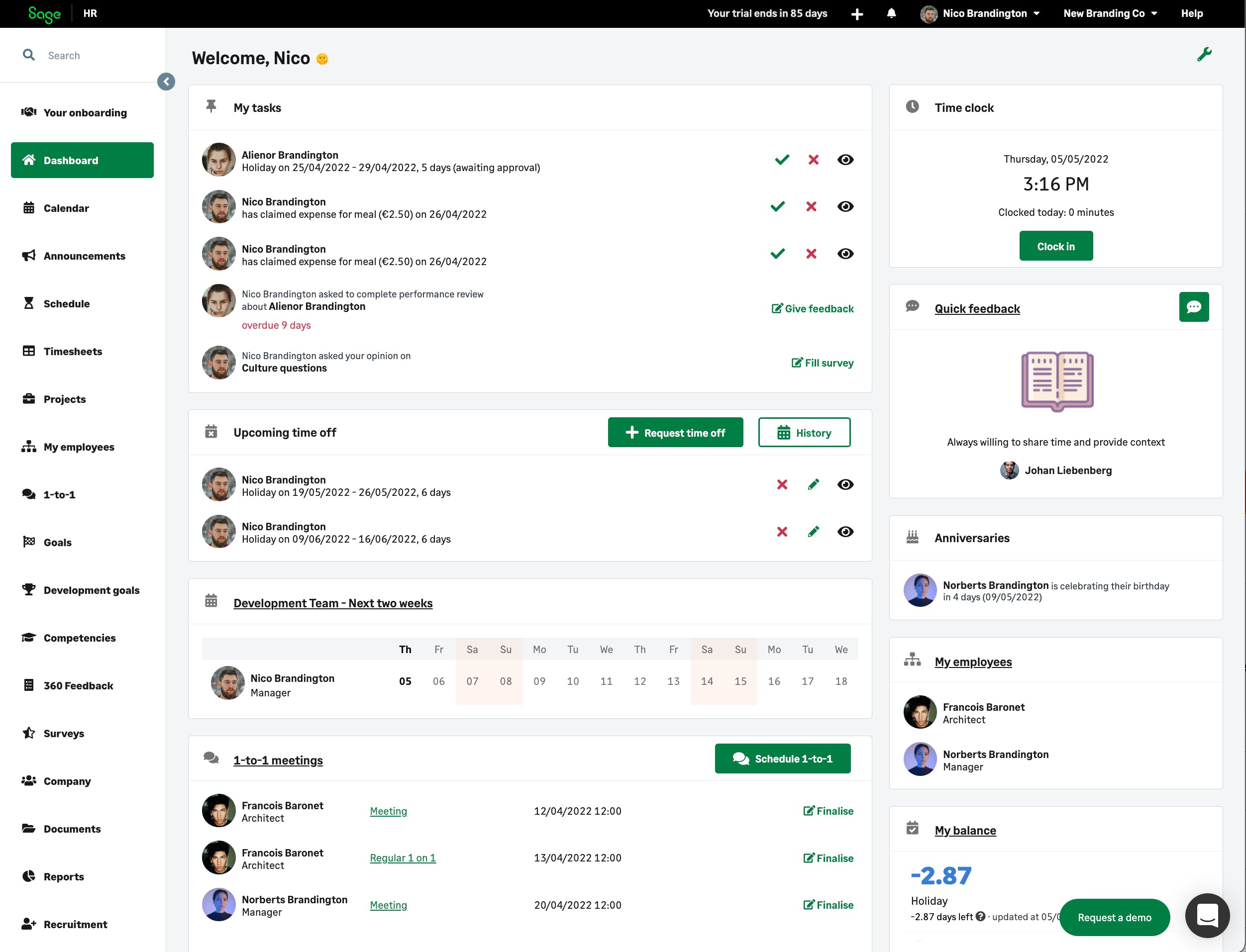 Beyond time-off management, Sage HR offers robust Sage HR features such as employee performance reviews, goal setting, and document storage. The system also provides visual dashboards that give HR teams insights into workforce trends, helping them make data-driven decisions. Seamless integrations with tools like Slack, Microsoft Teams, and G Suite ensure that your workflows remain uninterrupted.