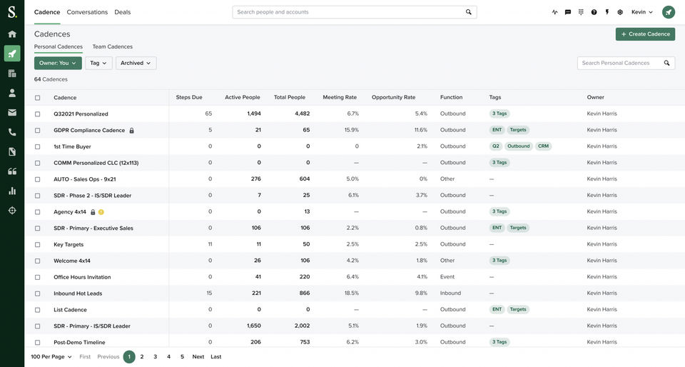- I cannot see a matrix of cadence replies on one screen. I have to freeze my computer by tabbing out 20+ tabs at a time to dig into each individual cadence reply.