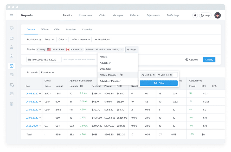 Scaleo is the Affiliate Marketing Software used for the below functionalities.