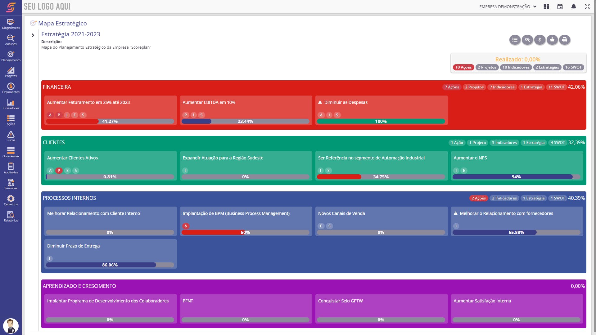 Scoreplan offers strategic planning and budgeting software that helps businesses set and track organizational goals efficiently. Designed for Brazilian companies, it features tools for financial planning, project management, and performance tracking, enabling organizations to align their objectives with actionable insights. For more details, visit [Scoreplan](http://www.scoreplan.com.br).