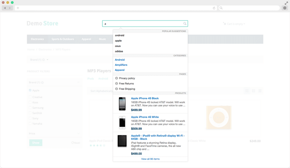 - Instant search suggestions