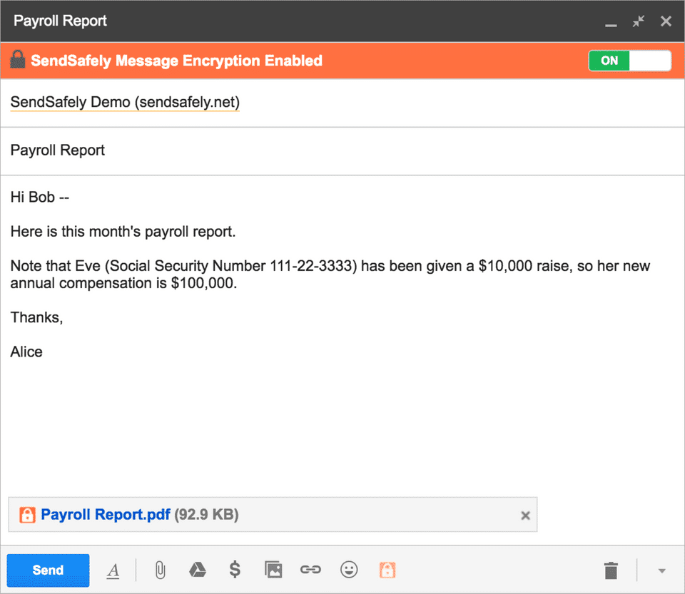 Sendsafely gives my company the ability to send and receive documents without worrying about the data/documents getting into the wrong hands. Basically, it limits our liability.