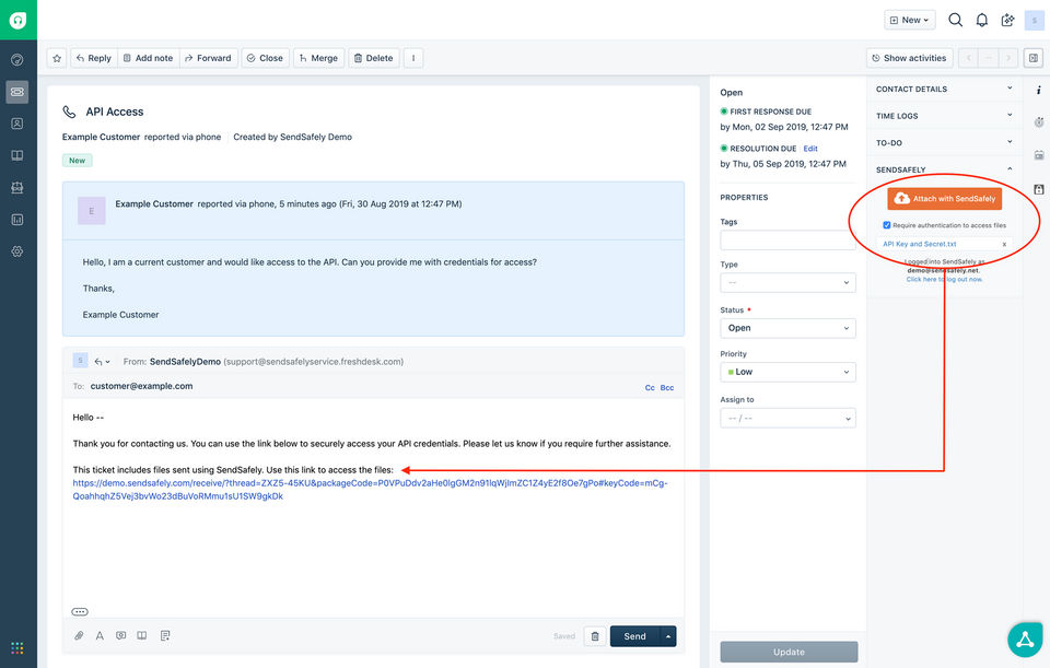 SendSafely provides Online (Ticket) support.