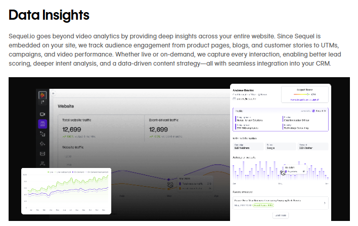 Comprehensive analytics tools track user engagement across every stage of the funnel, from UTM campaigns to in-session interactions. These insights integrate directly with popular CRMs like Salesforce and HubSpot, enabling better lead qualification and follow-ups.