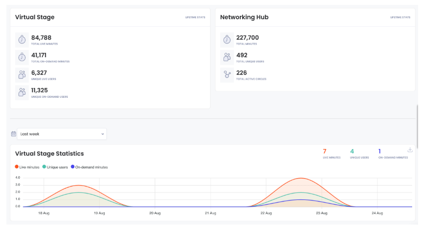 Real-time audience interaction: chat, polls, Q&A, networking
