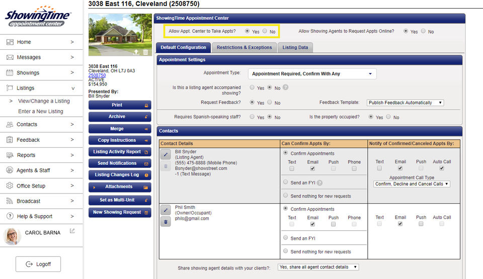 ShowingTime Appointment Center is the Appointment Scheduling Software used for the below functionalities.