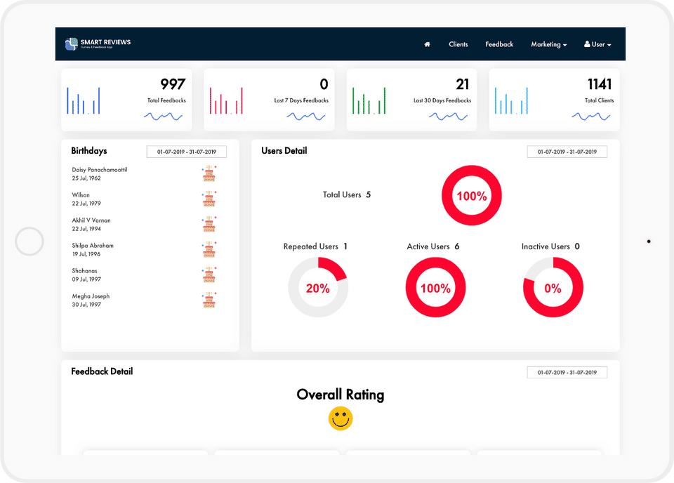 Shrivra SmartReviews is the Survey/ User Feedback Software used for the below functionalities.