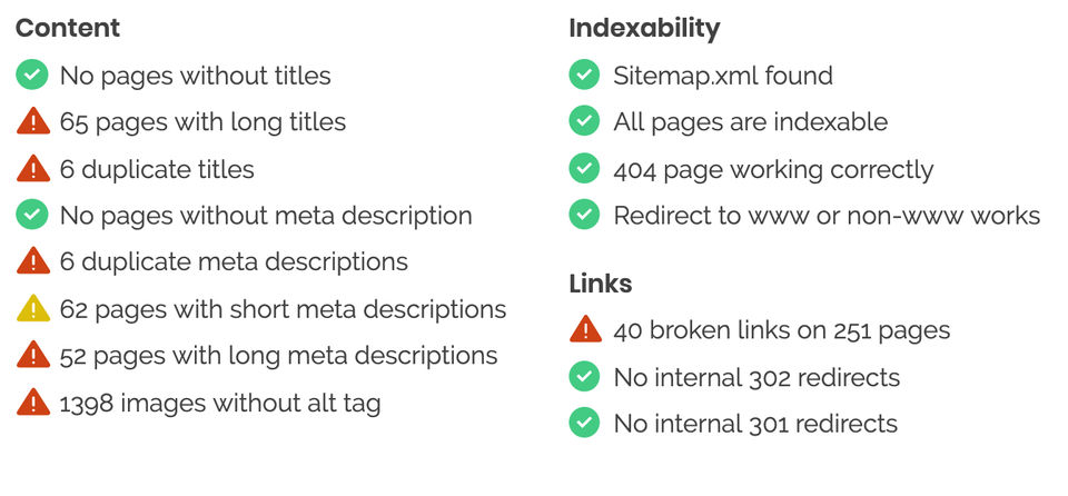 Missing some features and issues to detect like thin content,