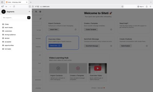 siteti is the WhatsApp Business API Providers used for the below functionalities.
