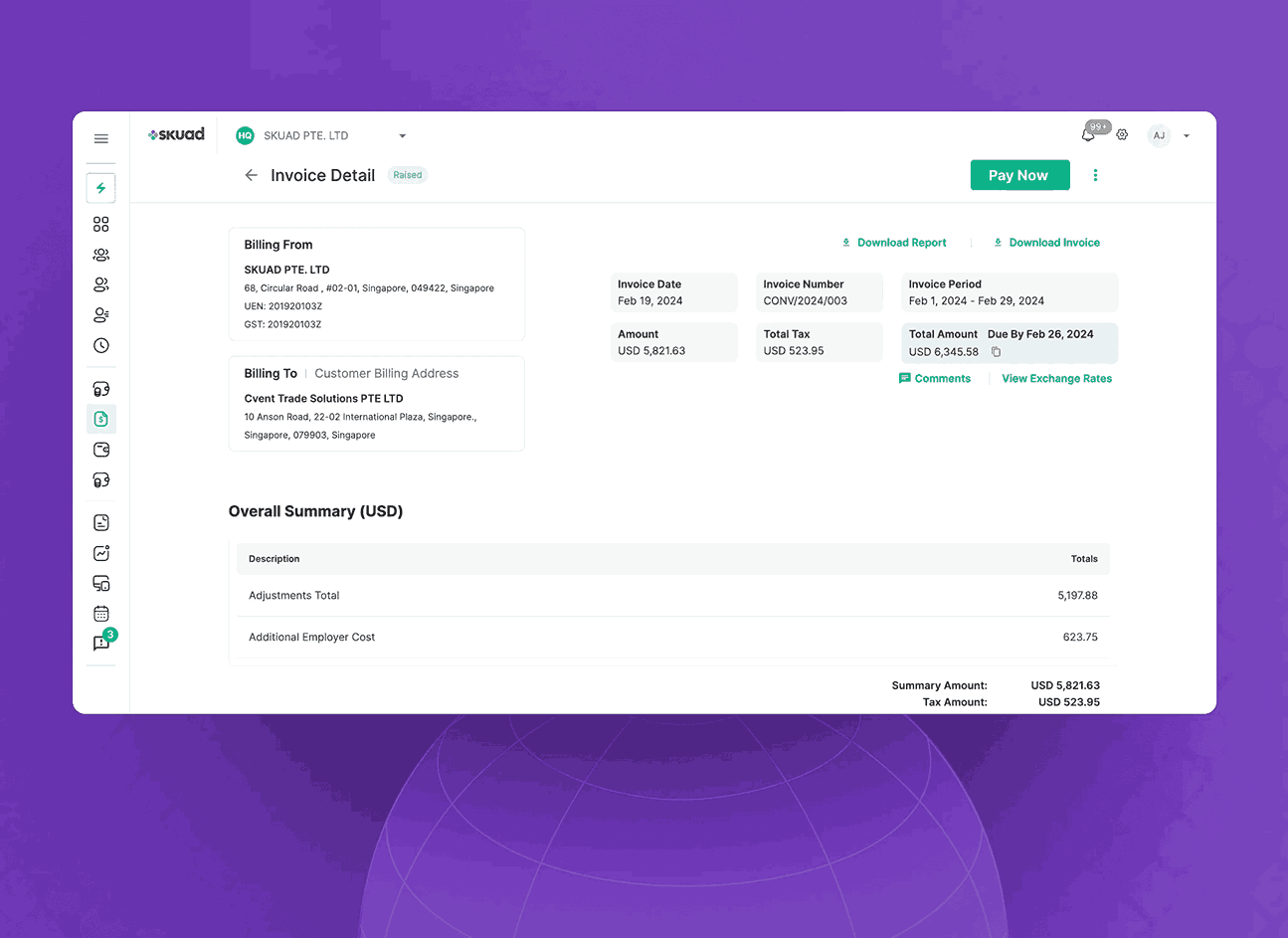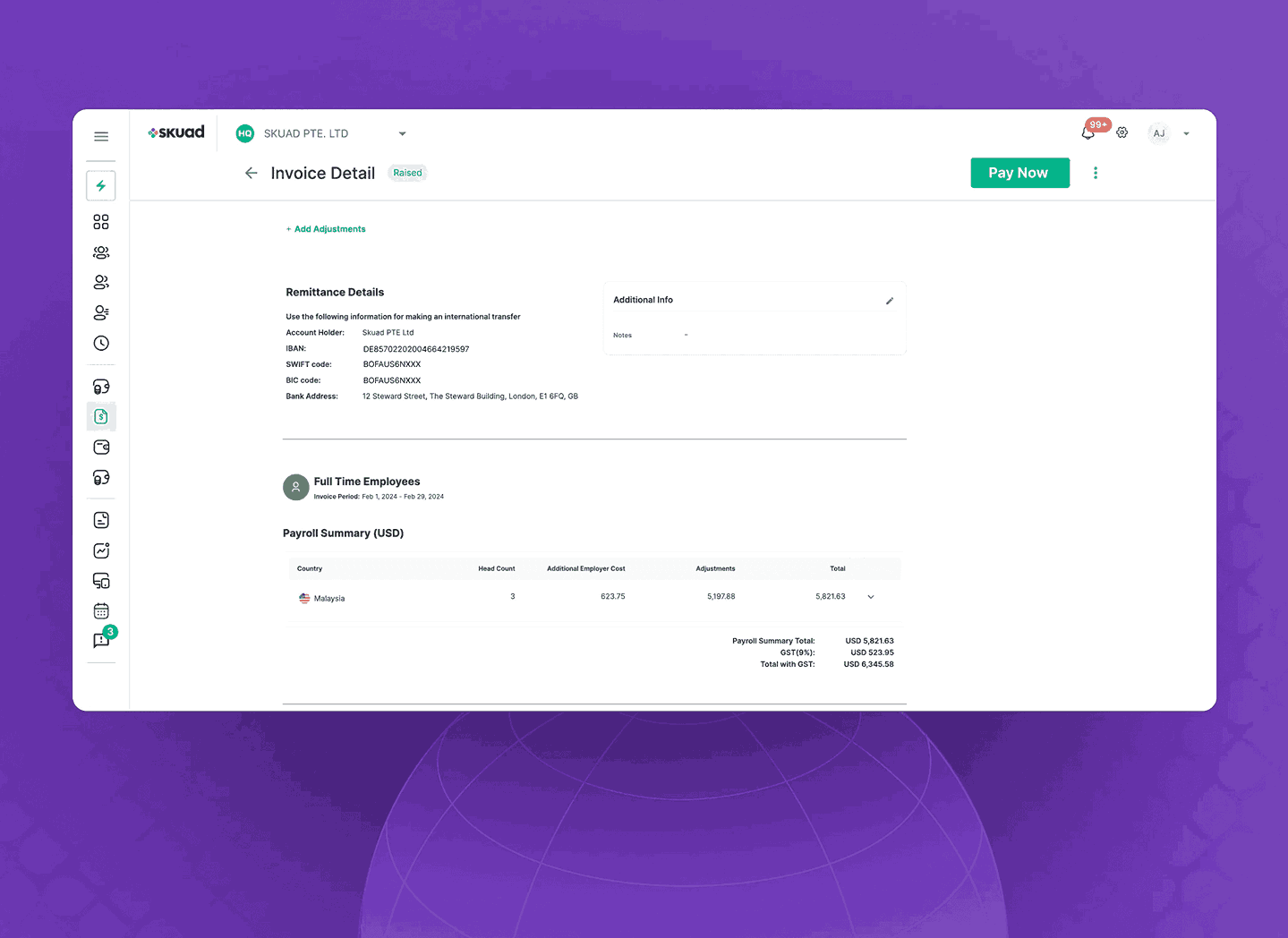 Through a single, intuitive dashboard, companies can manage employment contracts, run automated payroll, administer local benefits, and handle contractor payments with ease. This makes Skuad particularly valuable for startups and growing enterprises entering new international markets. The platform also supports invoice generation and document management, helping HR teams reduce administrative overhead and improve efficiency.