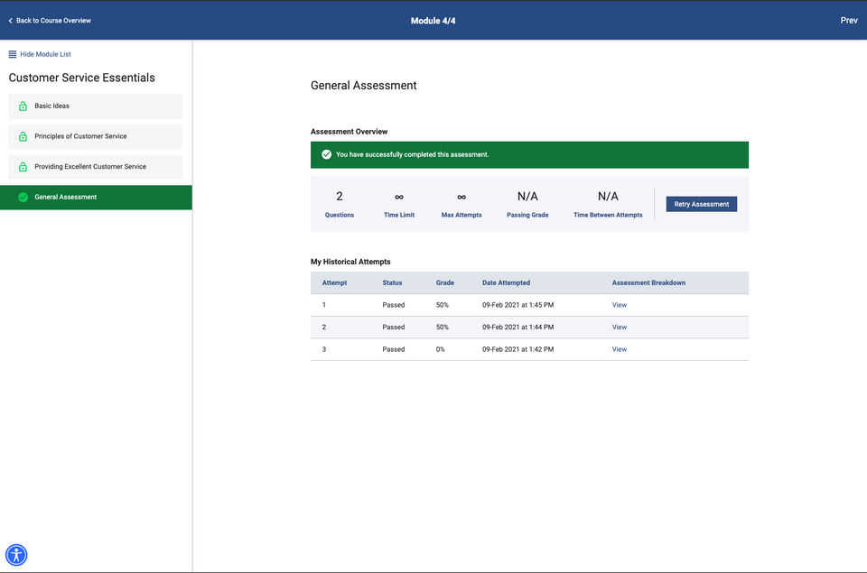 I like how easy the system is to use for employees using it for the first time. Very user-friendly. I also like the ability to add assessments after a training.