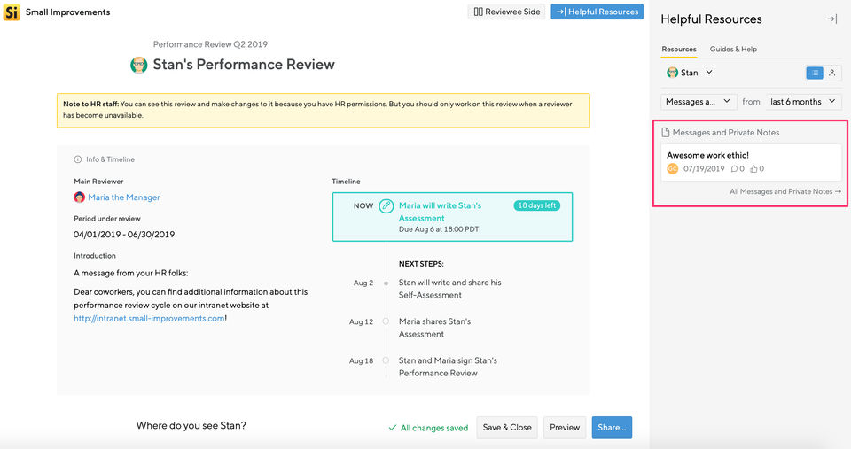The company that I worked for used Small Improvements mainly as a way to provide year end reviews for their employees. They didn't even use all of the amazing features that the product has to offer.