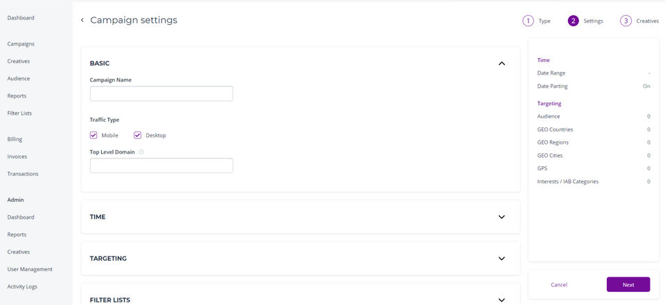 SmartyAds White Label DSP is the Demand Side Platform (DSP) used for the below functionalities.