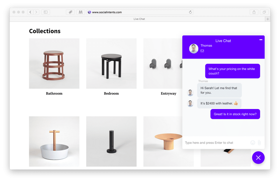 Social Intents is the Live Chat Software used for the below functionalities.