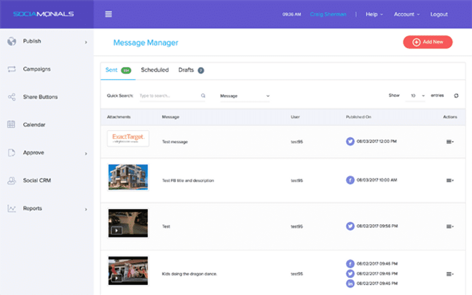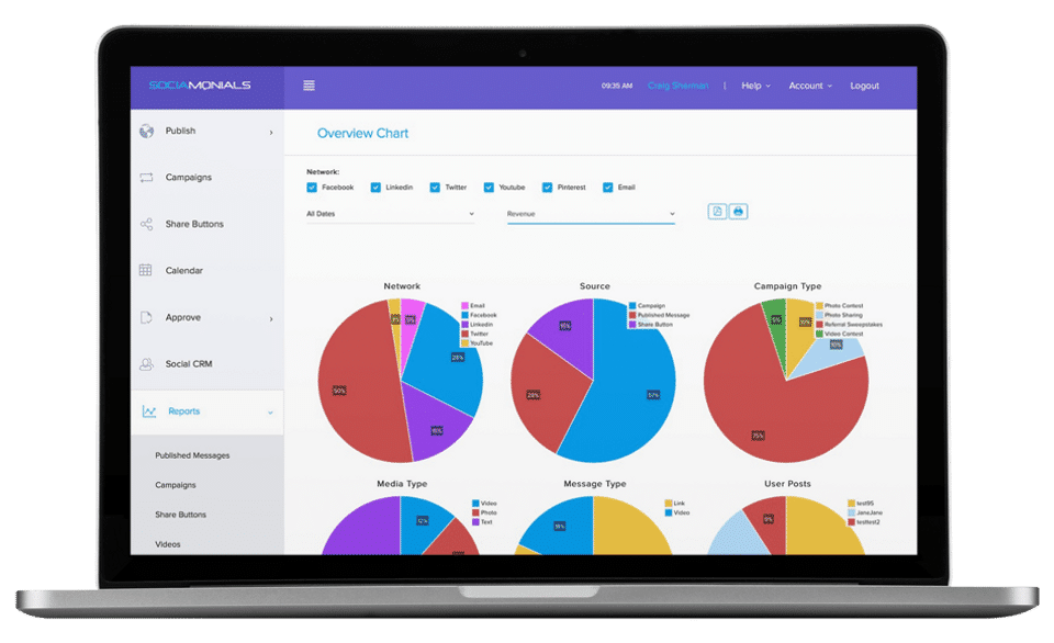 Sociamonials is the Social Media Management Software used for the below functionalities.
