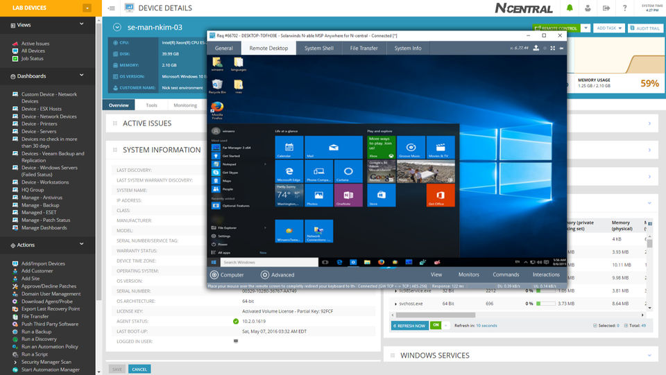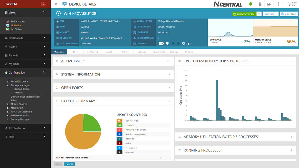 The best part of Solarwinds MSP RMM is that it does a fairly good job of being ready to go out of the box. There isn't a great deal of tweaking required like some other RMM solutions require. Likewise, the interface is layed out pretty well and you can easily see computers under management.