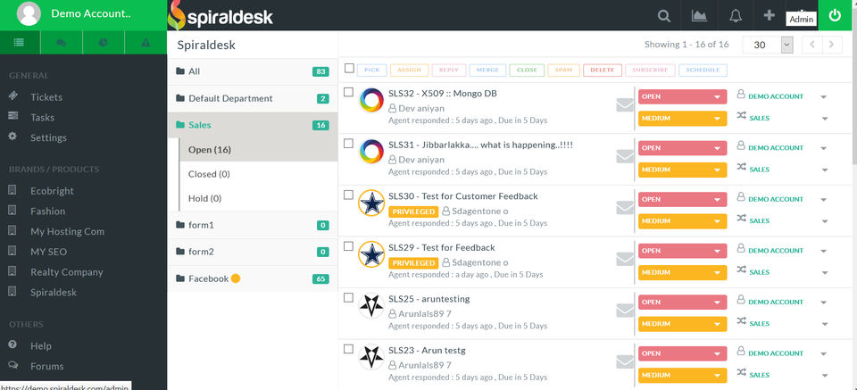 Spiraldesk has a fast ticket management system. The best thing is its instant chat function that allows more effective communication with customers. I can also create customizable reports and generate them in PDF files. Fortunately its price is incredible economic.