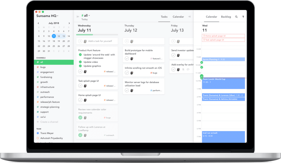 Sunsama is the Task Management Software used for the below functionalities.
