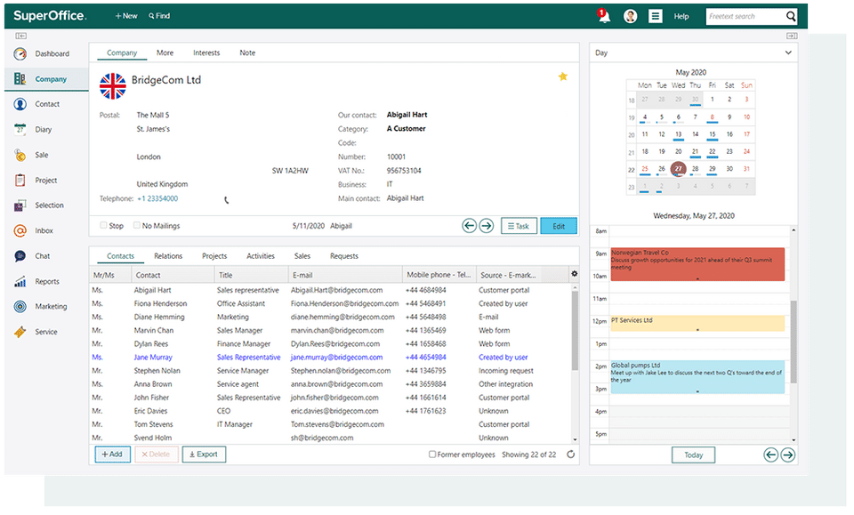 SuperOffice CRM is the CRM Software used for the below functionalities.