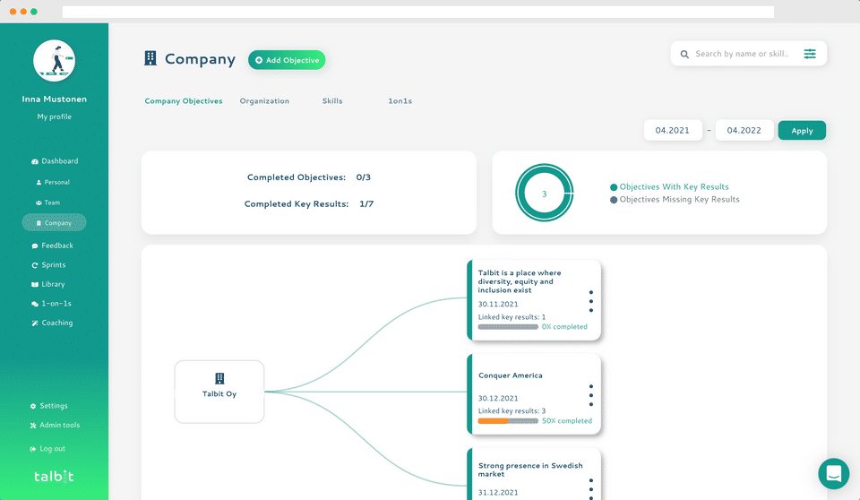 Talbit is the OKR Software used for the below functionalities.
