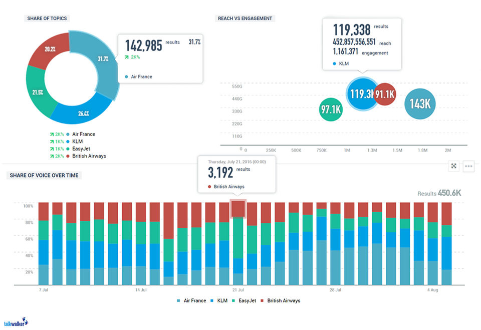 ?Los beneficios creados son diversos y los informes se convierten en un producto independiente que el cliente está dispuesto a pagar. Los clientes generalmente quieren tener una idea de su marca, quién está escuchando y participando con su producto y dónde somos distribuidores de la plataforma, que está integrada en nuestras capacidades más amplias de monitoreo de medios, por lo que la ofrecemos a varios clientes en cualquier industria . Estamos usando Talkwalker para Monitoreo de Marca y análisis competitivo.