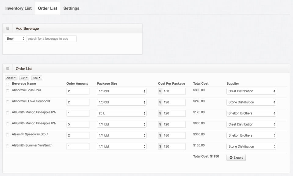 TapHunter is the Inventory Management Software used for the below functionalities.