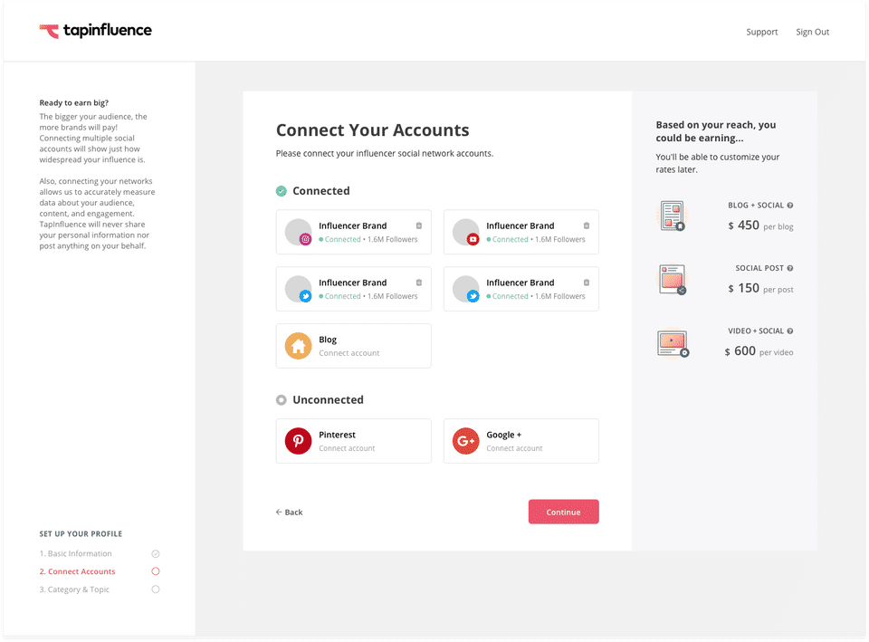 I reccomend Tapinfluence continue to innovate such as having a look a like model. Given the social space, spcial platforms is constently changing and influencers' value is determined differently. Tapinfluence should look into having a feature that shows what partnership and brands the influencer have work with in the past.