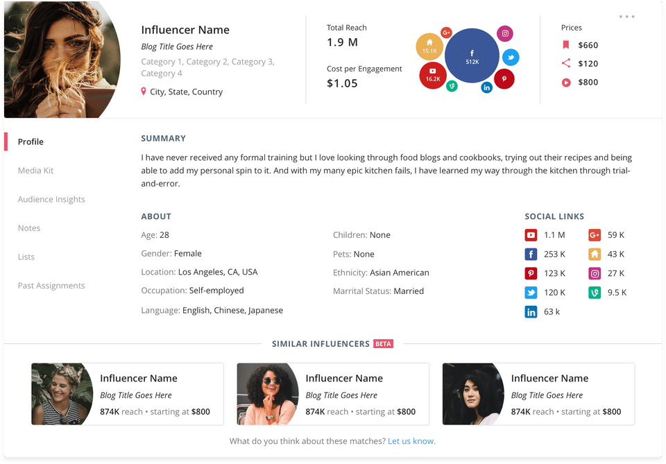 Unfortunately there are not a great pool of Asian or Asian American influencers. It would have been great to see influencers at all level of fame with varying amount of success and influence.