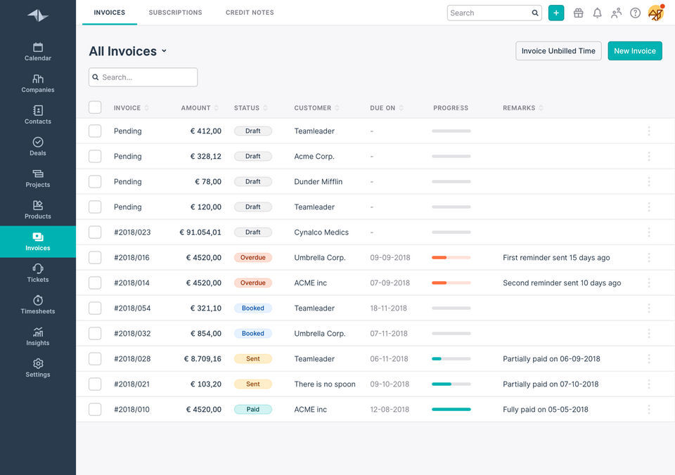 Teamleader is the CRM Software used for the below functionalities.