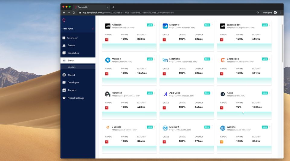 Templarbit Sonar is the Application Performance Monitoring (APM) Tools used for the below functionalities.