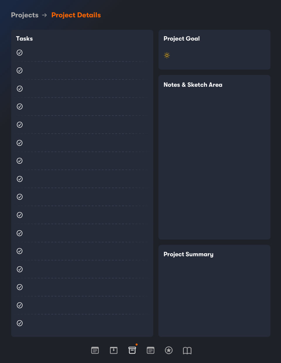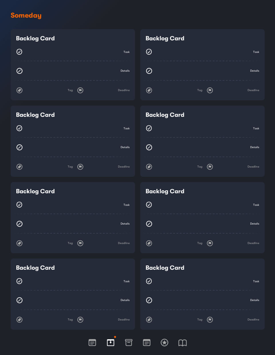 - Someday/inbox section (backlog cards)