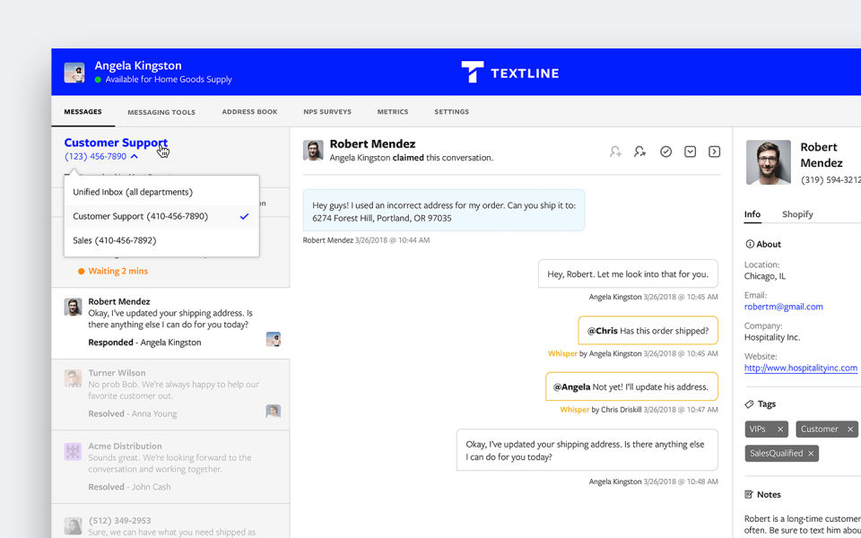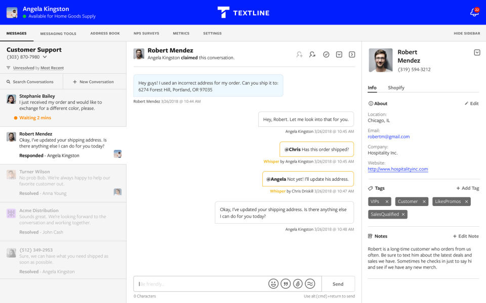 Textline is a business messaging solution that enables companies to connect with their customers through SMS. It provides an effective alternative to traditional communication channels like phone calls and emails by offering instant, two-way messaging. This improves response times, enhances customer engagement, and streamlines support operations.