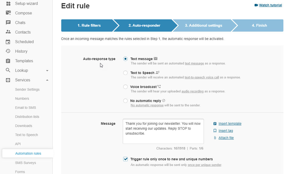 Bulk SMS: The platform supports the transmission of mass text messages, catering to scenarios where reaching a large audience simultaneously is essential. Whether it's a promotional campaign or an urgent notification, TextMagic ensures swift and reliable delivery.