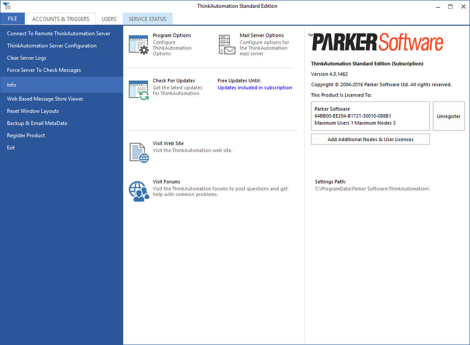 ThinkAutomation provides Phone,Business Hours,Online (Ticket) support.