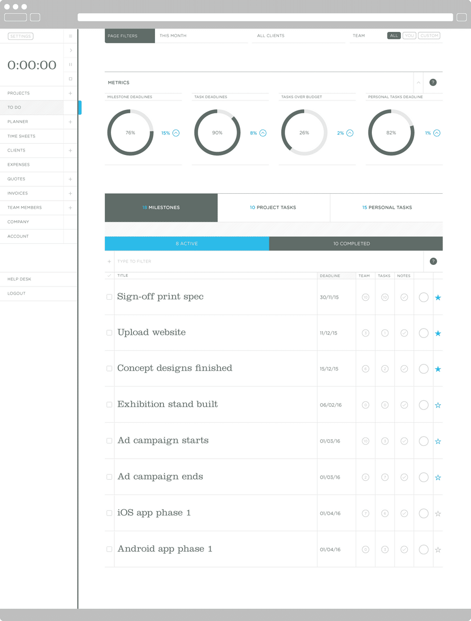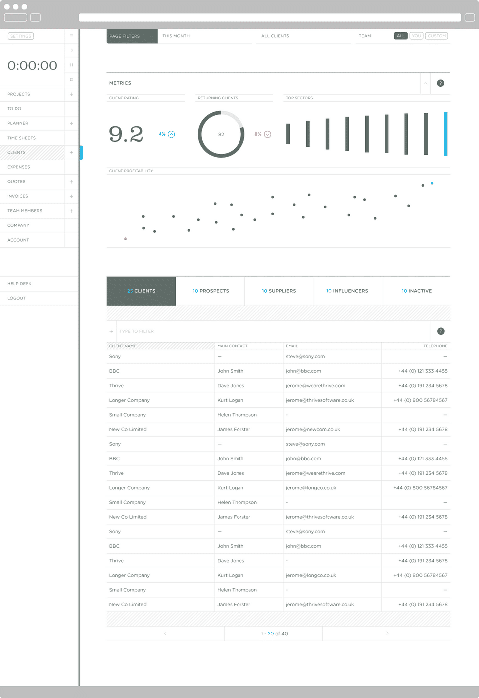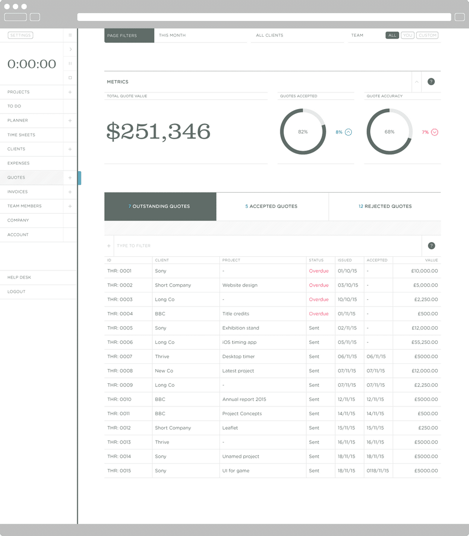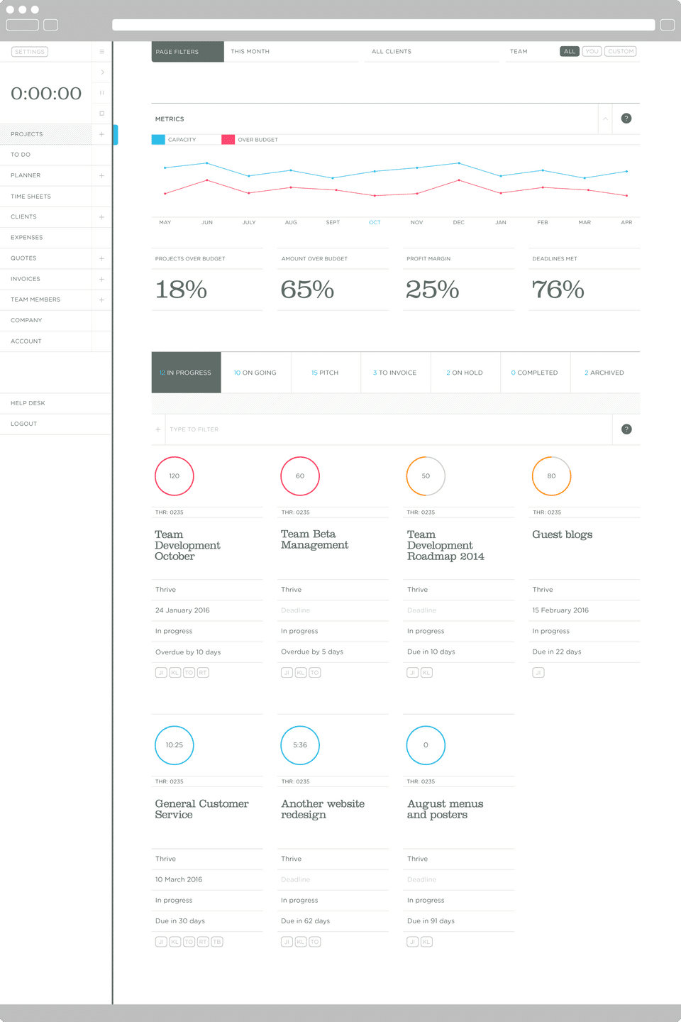 Thrive is the Project Management Software With Time Tracking used for the below functionalities.
