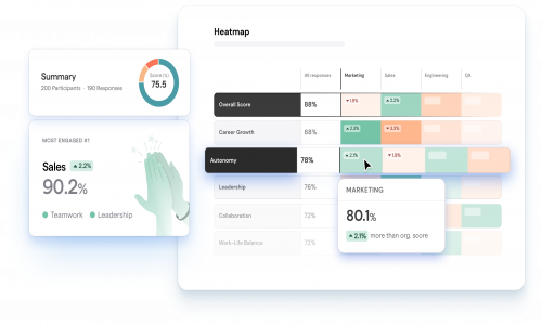 Another standout feature is the actionable analytics dashboard and org-wide employee engagement score heatmap. Here, HRs can dive deep into engagement metrics, thus facilitating data-driven decisions that make an immediate impact.