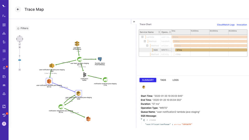 Thundra APM is the Application Performance Monitoring (APM) Tools used for the below functionalities.