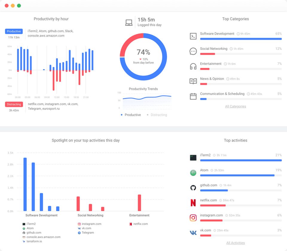 - Productivity Pulse to quickly see how focused you are today
