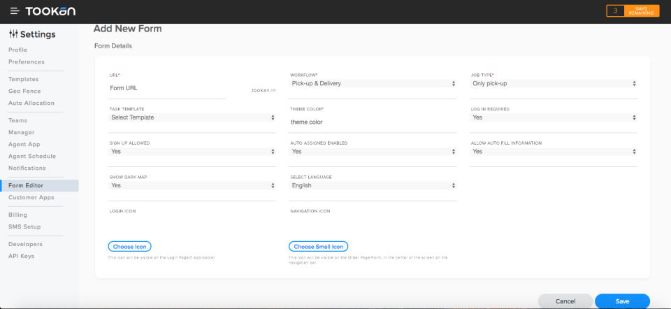Tookan is allowed 0 Days Free Trial.