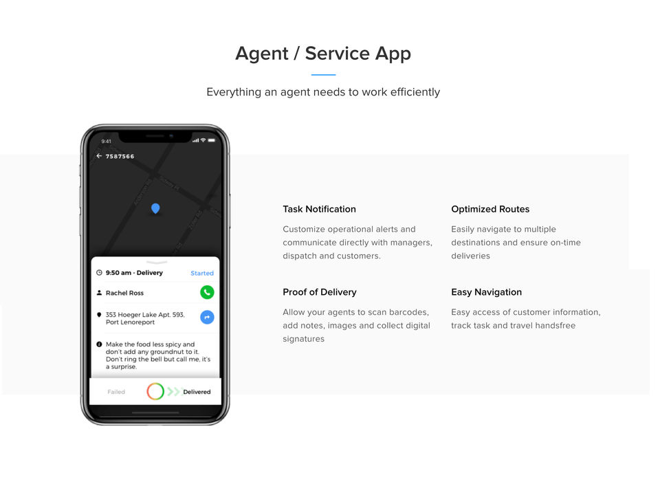 Track agents in real time and monitor customer deliveries.