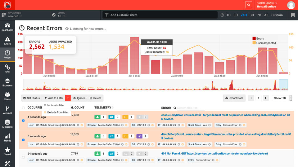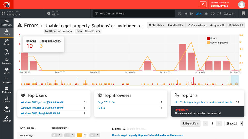 TrackJS is the Bug Tracking Software used for the below functionalities.